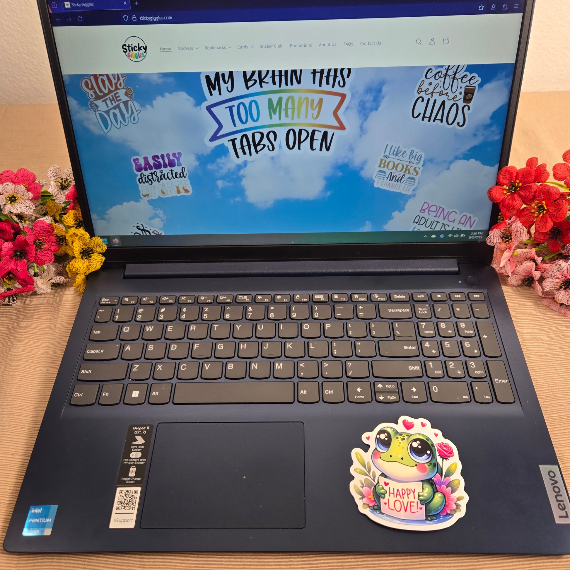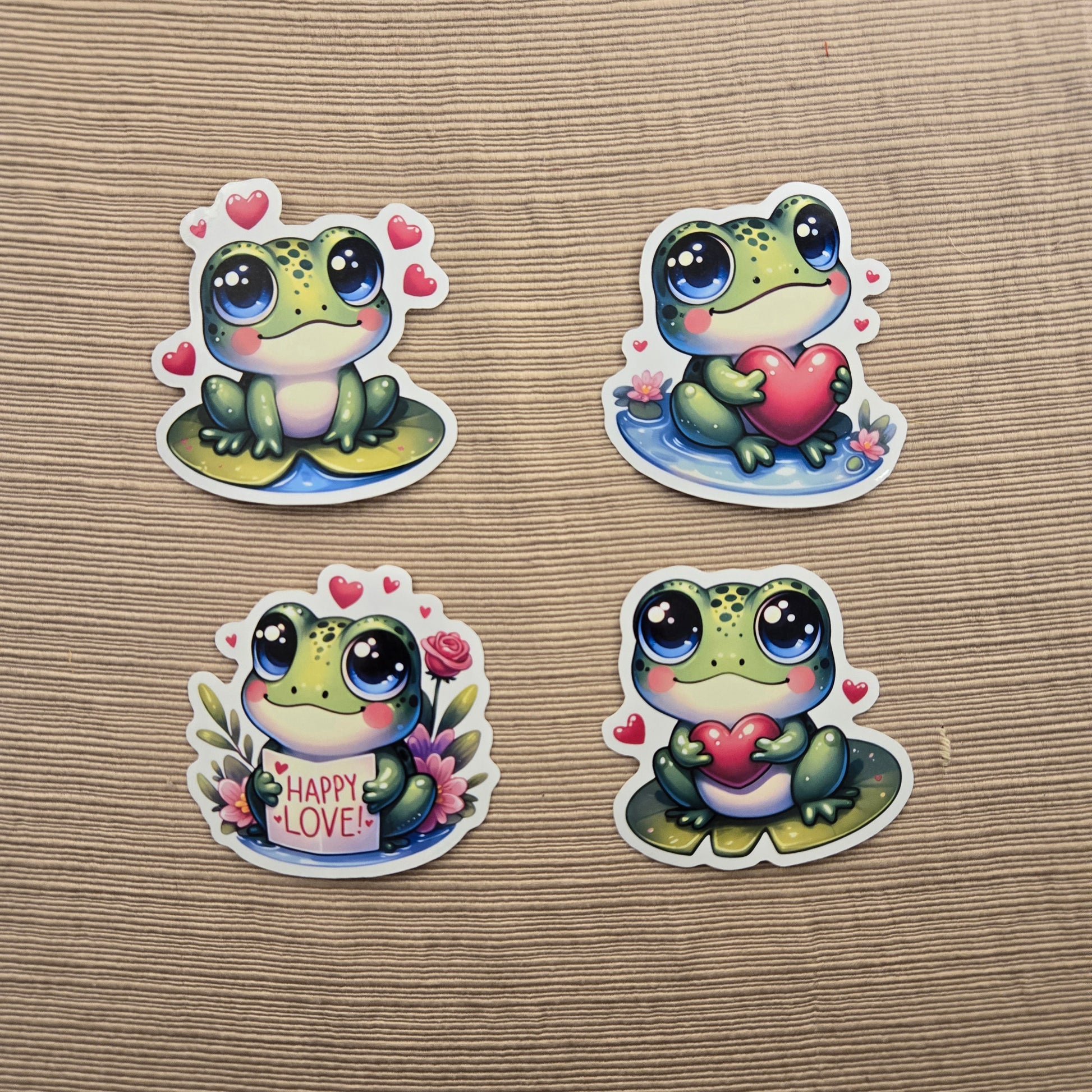 Add a charming touch with the Adorable Love Frog Stickers! Each 3-inch sticker is laminated and water-resistant, ensuring it sticks securely to plastic, metal, glass, or any smooth surface without fading. These playful stickers are perfect for brightening up your laptop, water bottle, notebook, or any favorite item. With 4 different cute frog designs to choose from, you can mix and match to show off your froggy affection. These stickers make a delightful gift for frog enthusiasts and anyone who loves adding a bit of fun and personality to their everyday gear.