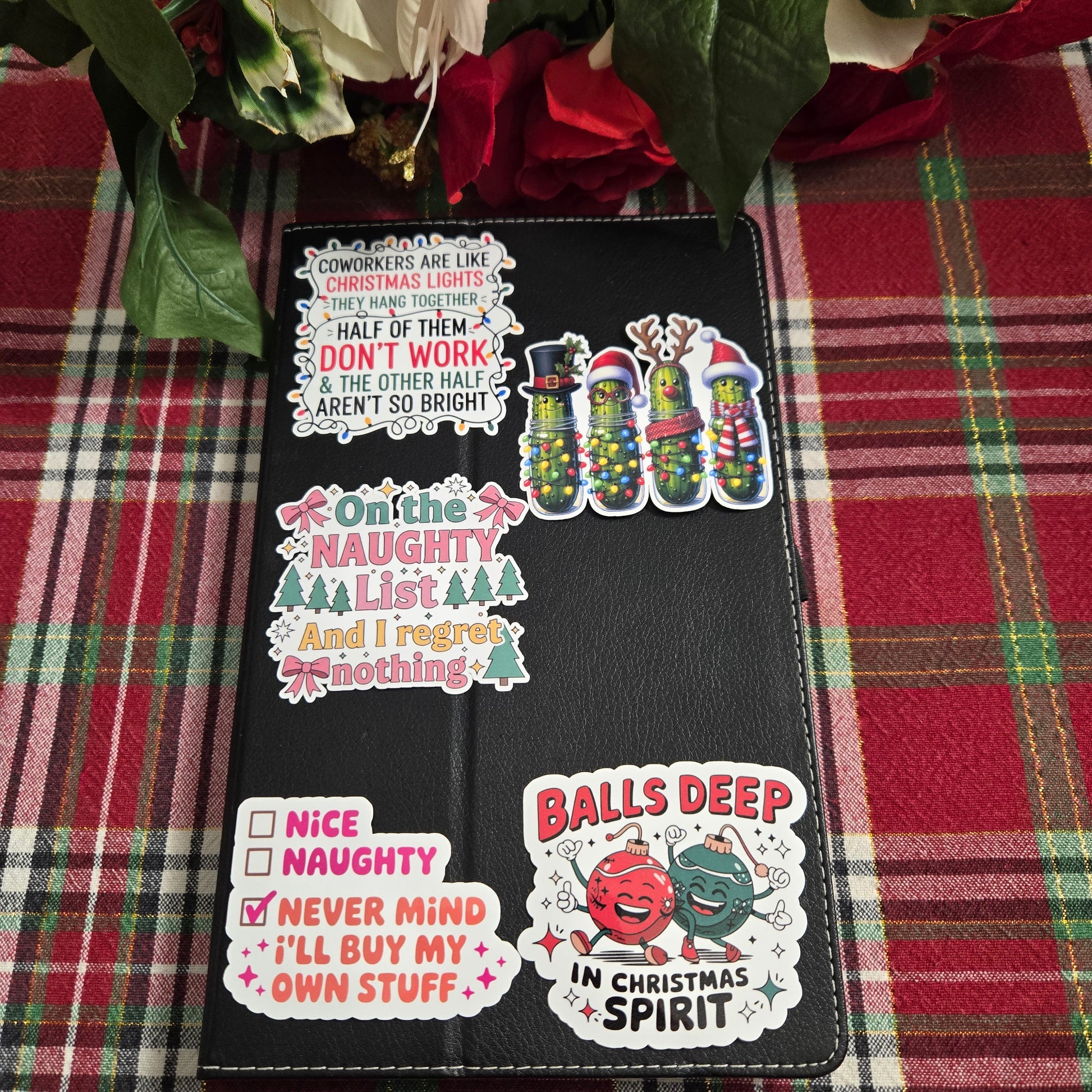 Each 3-inch laminated vinyl sticker features bold, funny adult humor perfect for those who like their holidays with a side of sass.