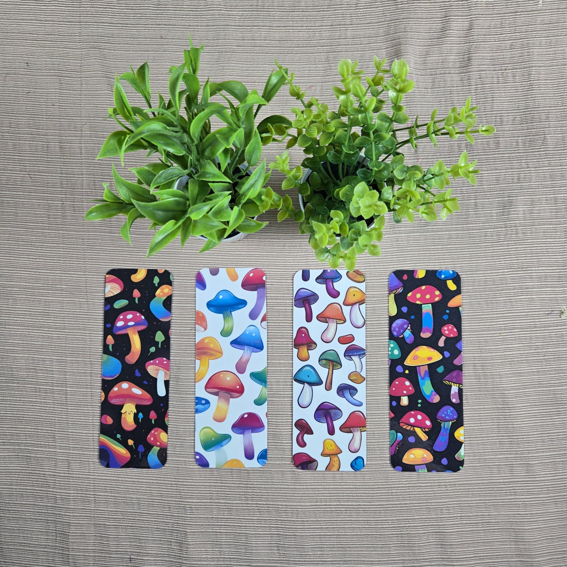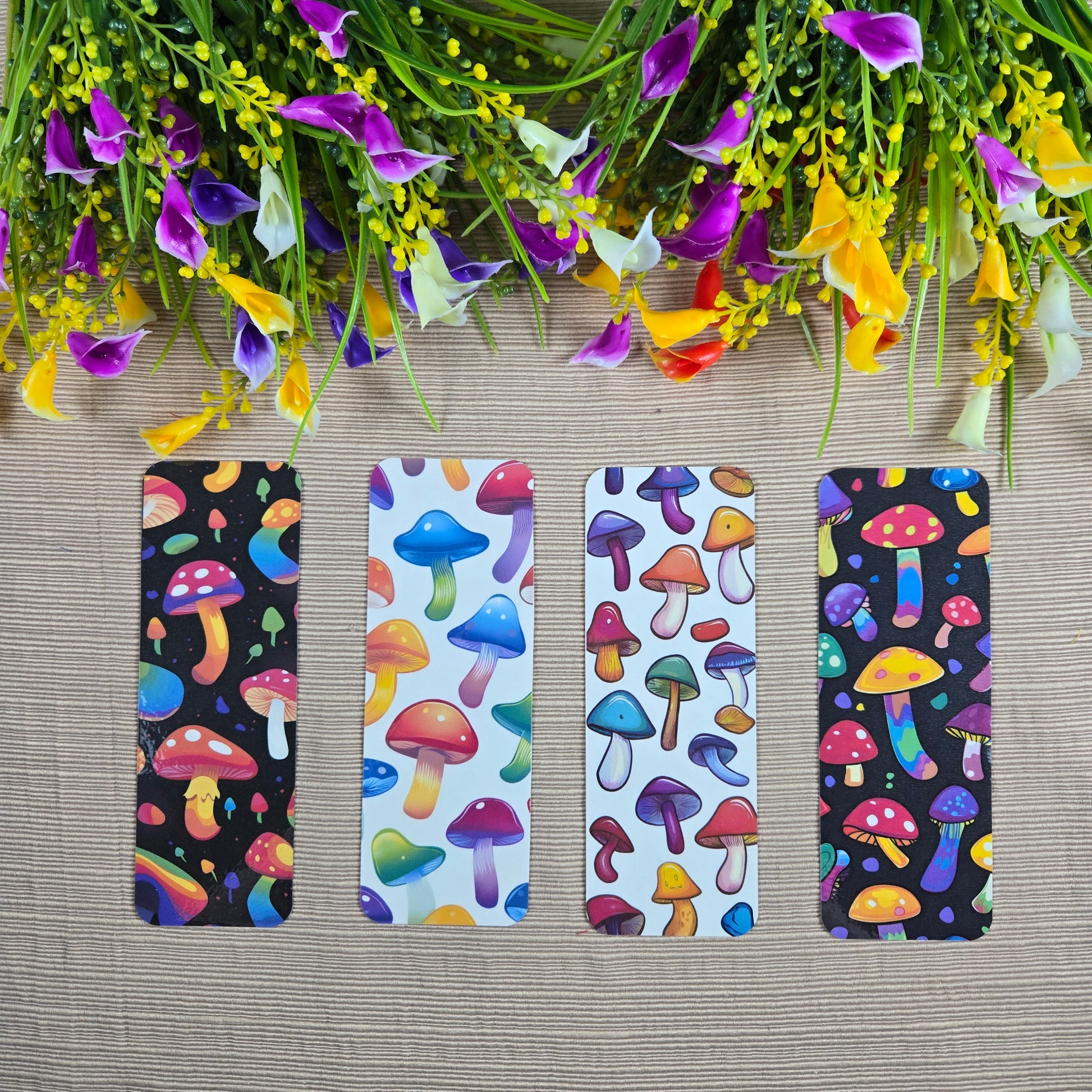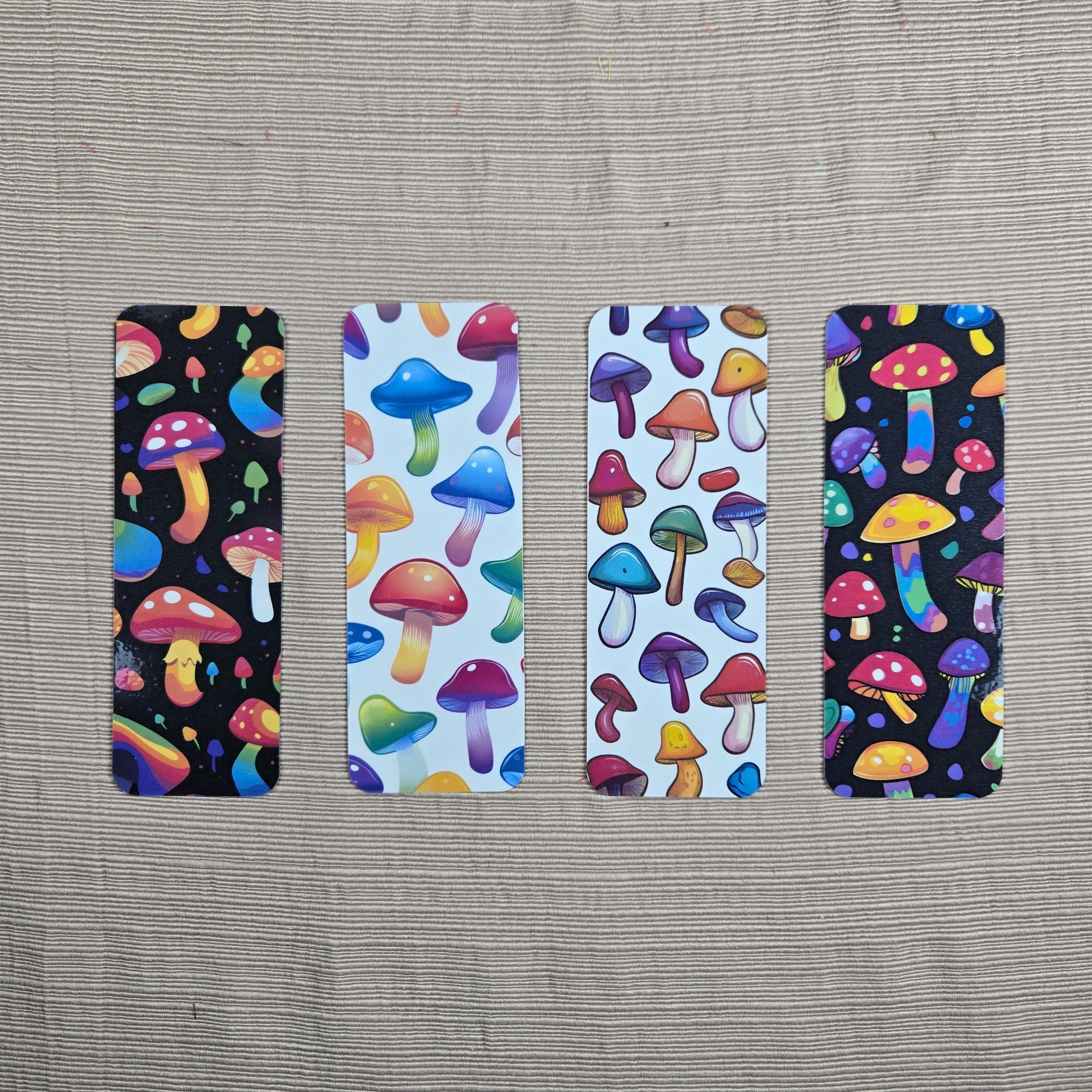 Add a splash of fun to your reading with this 2x6 inch laminated Colorful Shrooms Bookmark, featuring bright, playful mushroom designs on both sides. Perfect for keeping your spot in style or sharing a whimsical gift with friends and fellow book lovers. With four unique designs to choose from, collecting them all not only adds cheer to your reading routine but also lets you save. Brighten every page turn and let these lively bookmarks bring a little magic to your adventure.