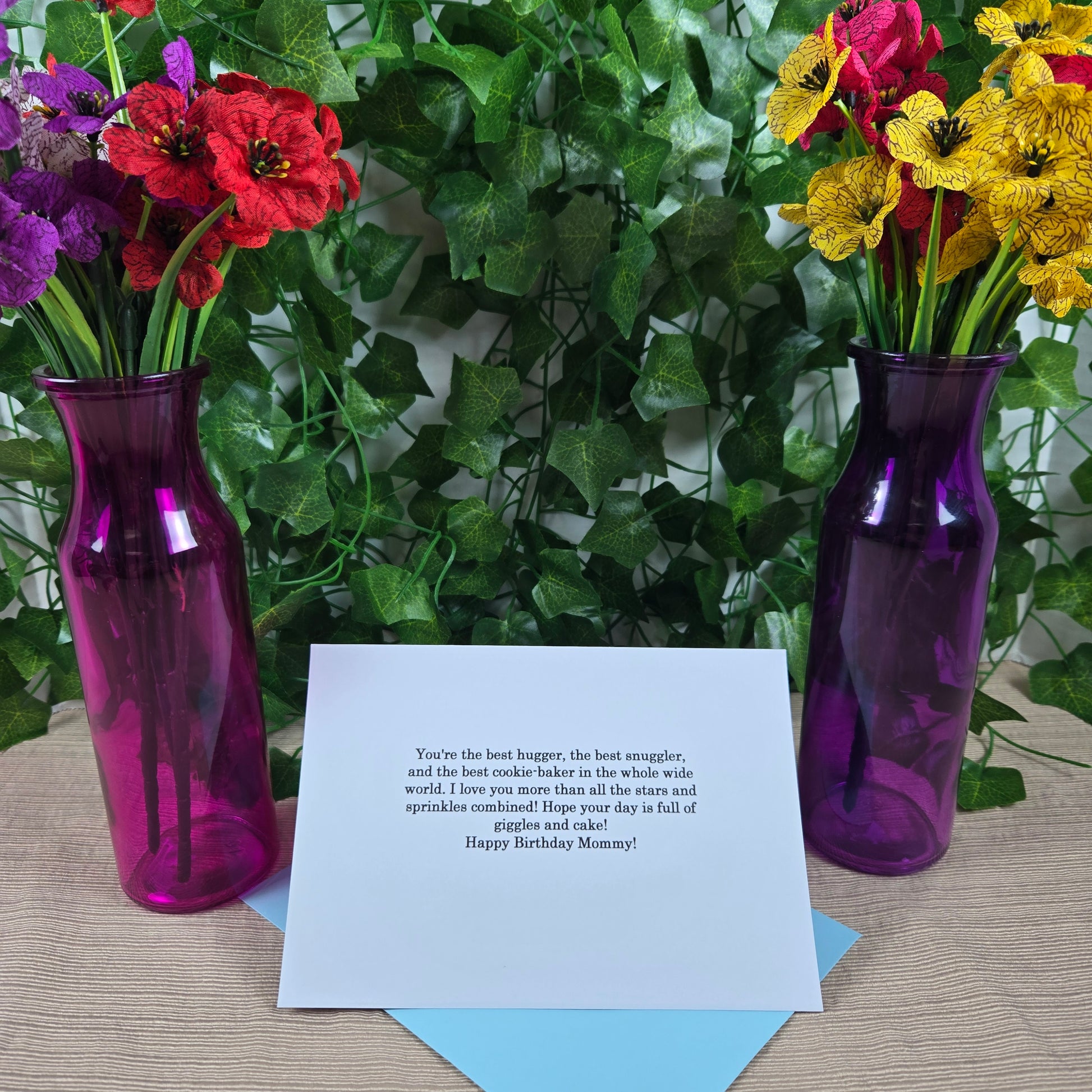Celebrate Mom’s birthday in a unique way with this 5x7 Coloring Mom Happy Birthday Card, made for kids to personalize by coloring or painting. This hands-on design transforms a simple card into a meaningful keepsake bursting with love and creativity. It includes a bright blue envelope that pairs perfectly with the fun, playful style. With a sweet and cheerful message already inside, this card makes it easy for children to show their love, creating a memorable birthday gift Mom will cherish forever.