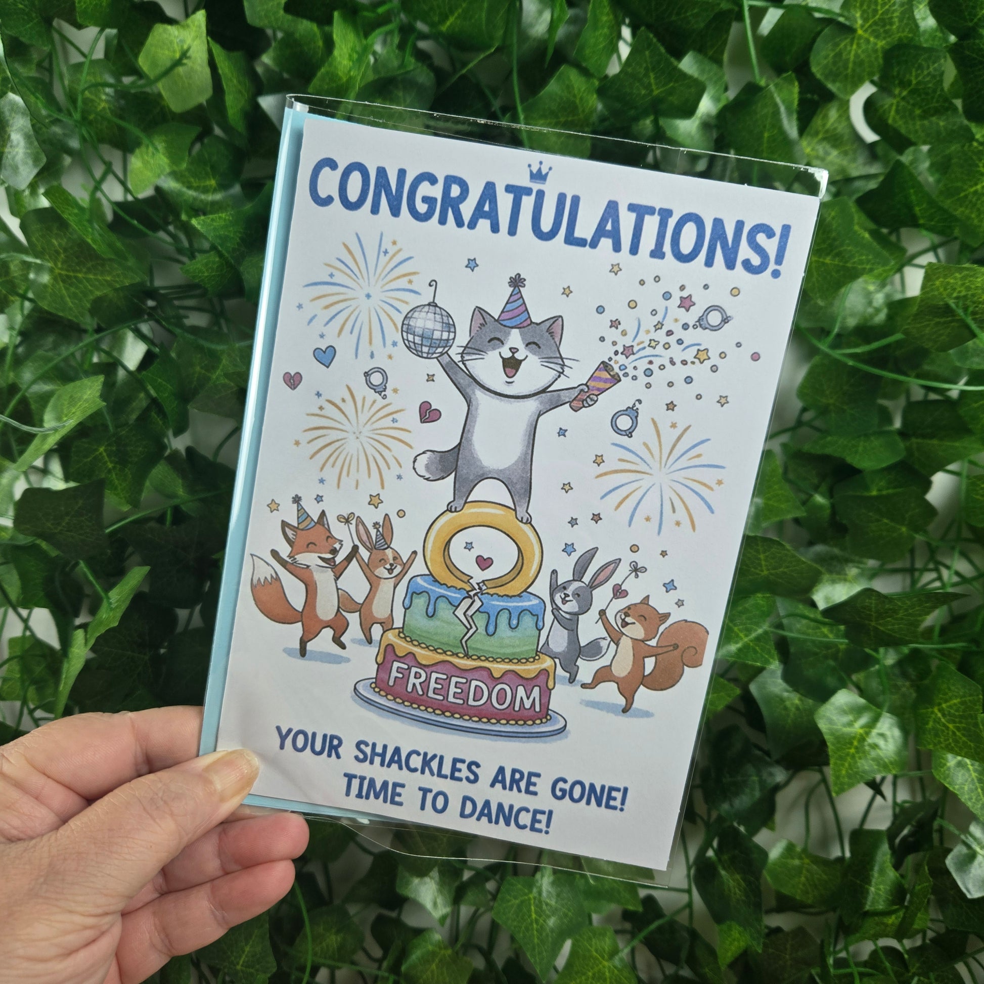 Celebrate a fresh start with a laugh using this 5x7 Congratulations On Your Divorce Funny Card. Designed to bring humor and lightness to a new chapter, it features a witty message already included to make your sentiment clear without any extra effort. The card arrives with a matching light blue envelope, adding a cheerful and polished touch. Perfect for friends or family who appreciate a playful twist on life’s transitions, this card helps turn divorce into an opportunity for smiles and positive vibes. Ideal for sharing encouragement and good humor during a big life change.