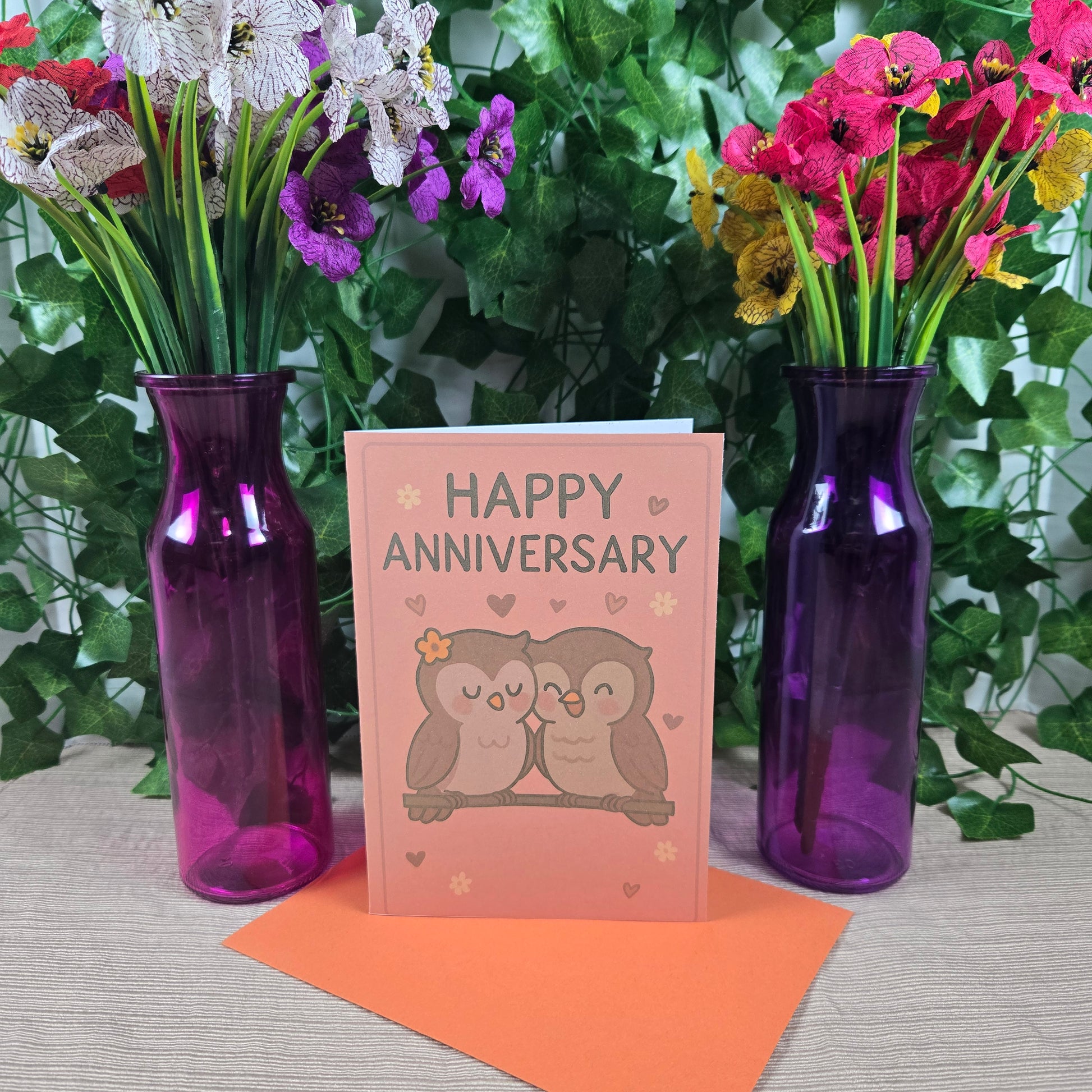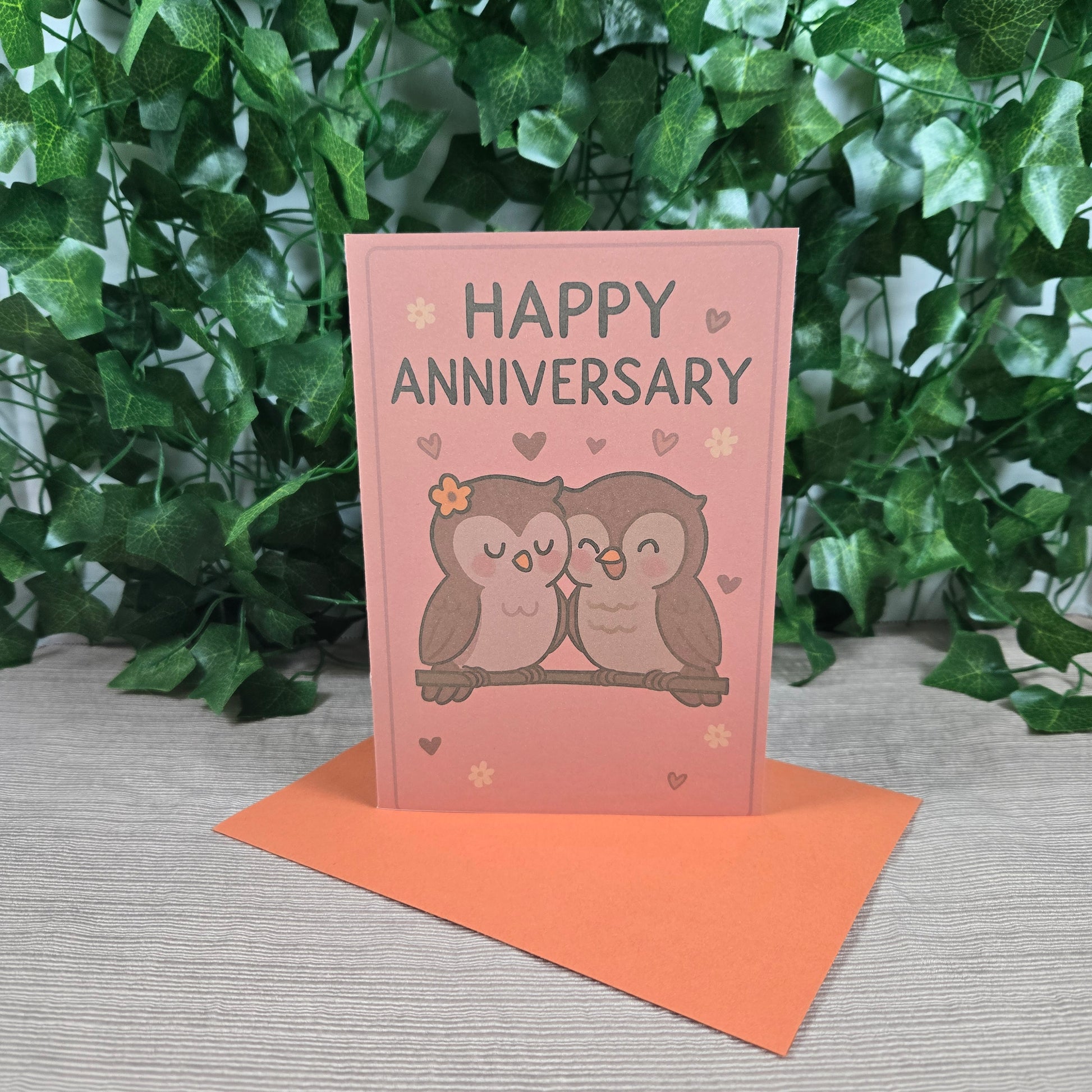 Celebrate a special milestone with the adorable 5x7 Cute Owl Couple Anniversary Card. Featuring a playful illustration of a lovable owl pair, this card brings a touch of whimsy and warmth to any anniversary celebration. It comes with a matching orange envelope that perfectly complements the cheerful design. Inside, a loving message is already included to share your heartfelt congratulations and joy. Perfect for bringing smiles and laughter, this charming card is an ideal way to honor the unique bond of any couple.