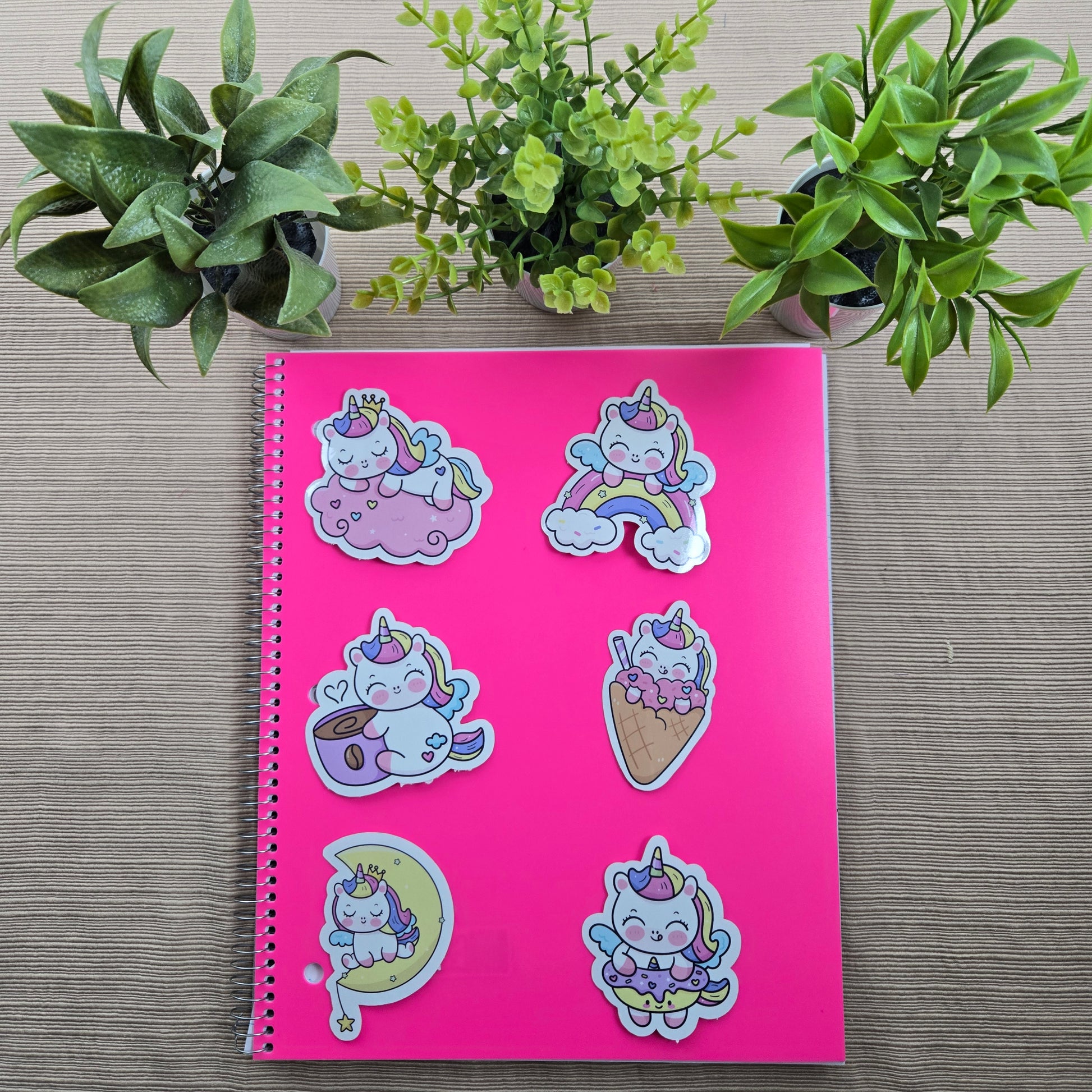 Add a splash of magic with these Cute Unicorn Stickers! Each 3-inch sticker is laminated and water-resistant, sticking securely to plastic, metal, glass, or any smooth surface without fading. Give your laptop, water bottle, or notebook a playful boost and show off your unicorn love with flair. Choose from 6 delightful designs—and save more when you collect several! Perfect for kids and anyone enchanted by unicorns.