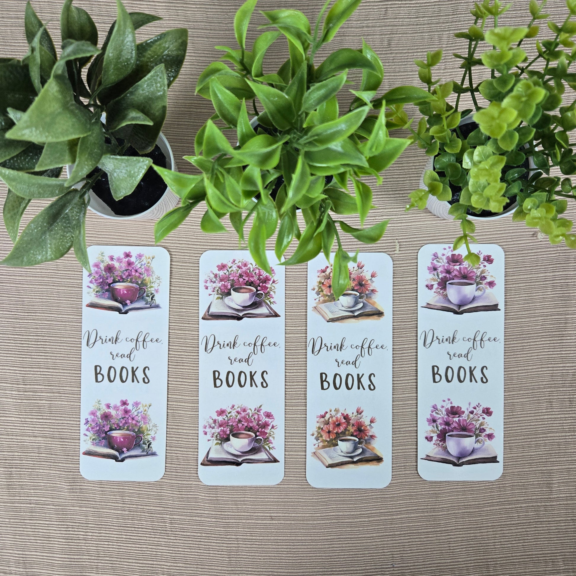 The Drink Coffee and Read Books Bookmark is an ideal companion for your reading journeys, sized conveniently at 2x6 inches and laminated to ensure lasting durability through many cozy reading moments. With charming artwork on both sides, this bookmark adds a playful and heartwarming touch to every page. Offered in four distinct and whimsical designs, it celebrates the delightful combination of flowers, coffee, and engrossing stories. Whether you love books or coffee, this bookmark makes a fun treat for yourself or a thoughtful gift for others.