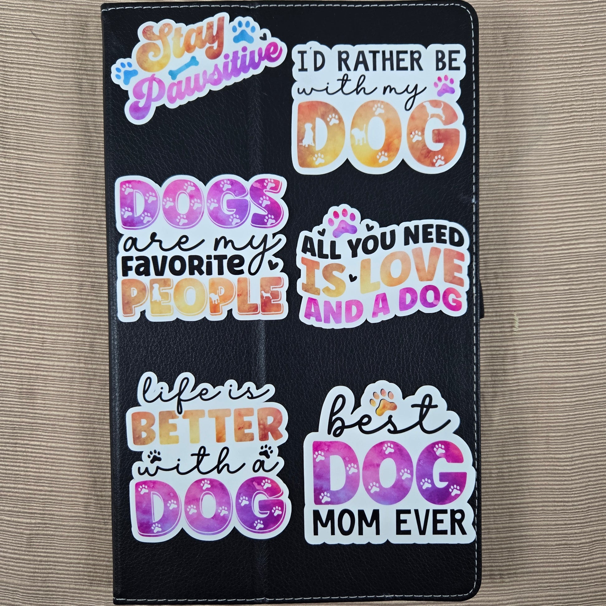Fun Dog Quote Stickers come in a set of 6 unique designs! Each 3-inch sticker is laminated and water-resistant, sticking securely to plastic, metal, glass, or any smooth surface. Perfect for personalizing your laptop, water bottle, notebook, or phone case, these lively designs bring a playful and bold energy. Great for collecting and trading with friends, these durable and eye-catching stickers are an ideal way for dog lovers to express themselves and stand out.
