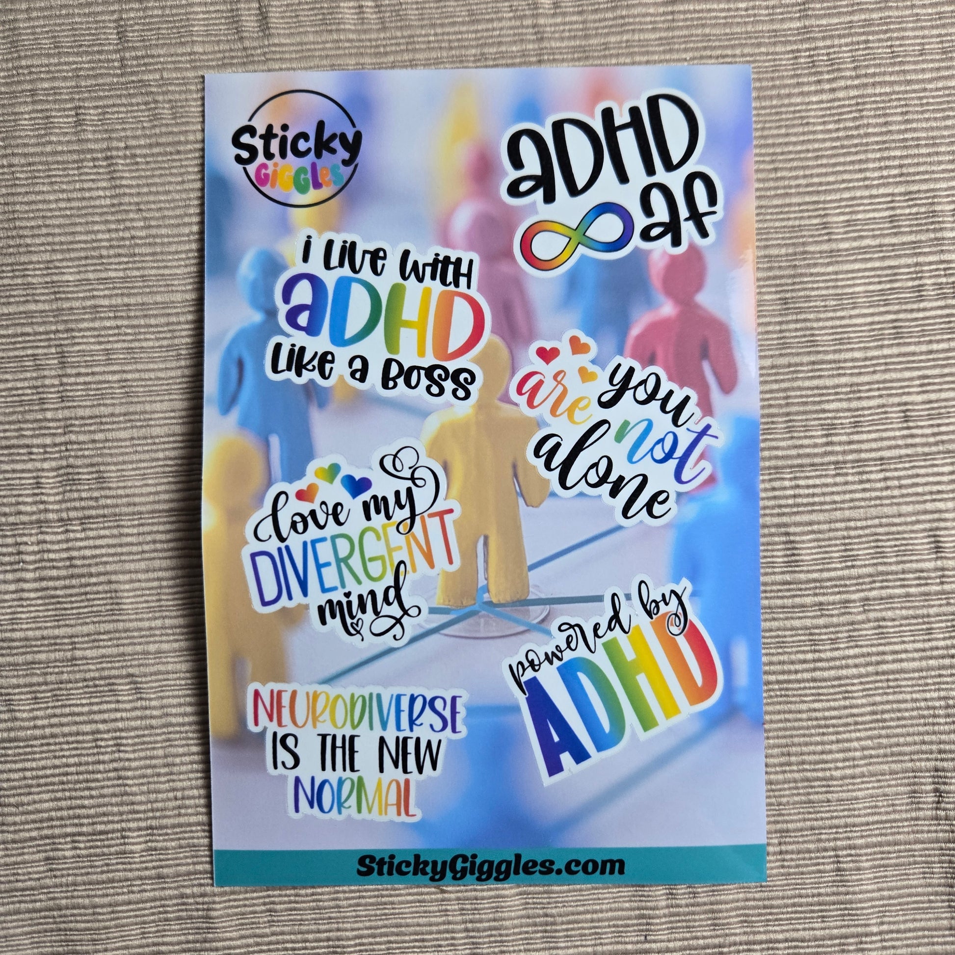Fun Neurodivergent Sticker Sheet 6 Stickers