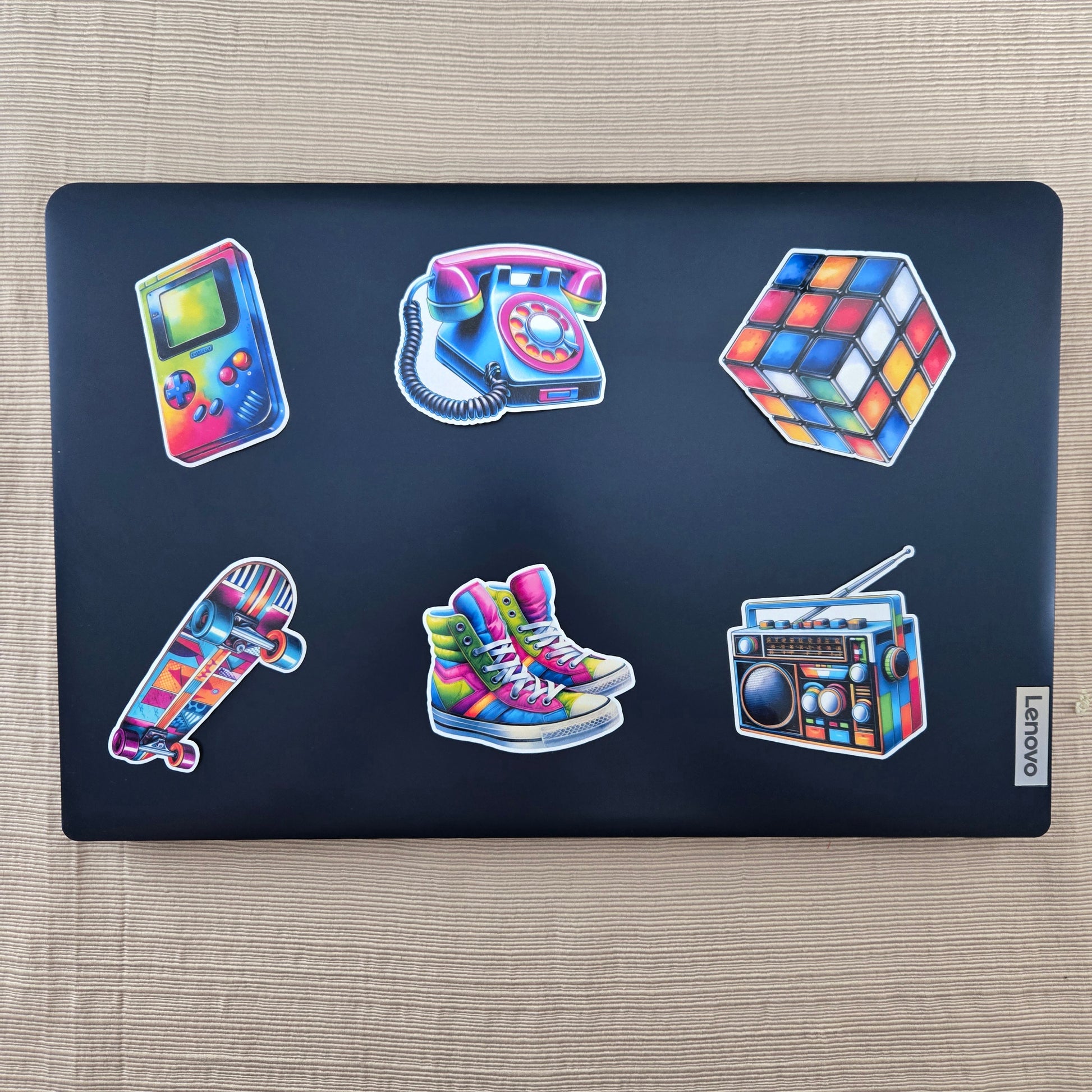 Step back in time with our Fun Retro Stickers, featuring six vibrant, 3-inch designs inspired by iconic moments and objects from the past. Each sticker is laminated for lasting shine and durability, making them perfect for decorating laptops, notebooks, water bottles, or anywhere you want to add a nostalgic touch. Whether you grew up in the era or just love retro vibes, these playful stickers bring a cheerful blast from the past to brighten your day and spark conversation wherever you stick them. Celebrate the fun of yesteryear with a modern twist!