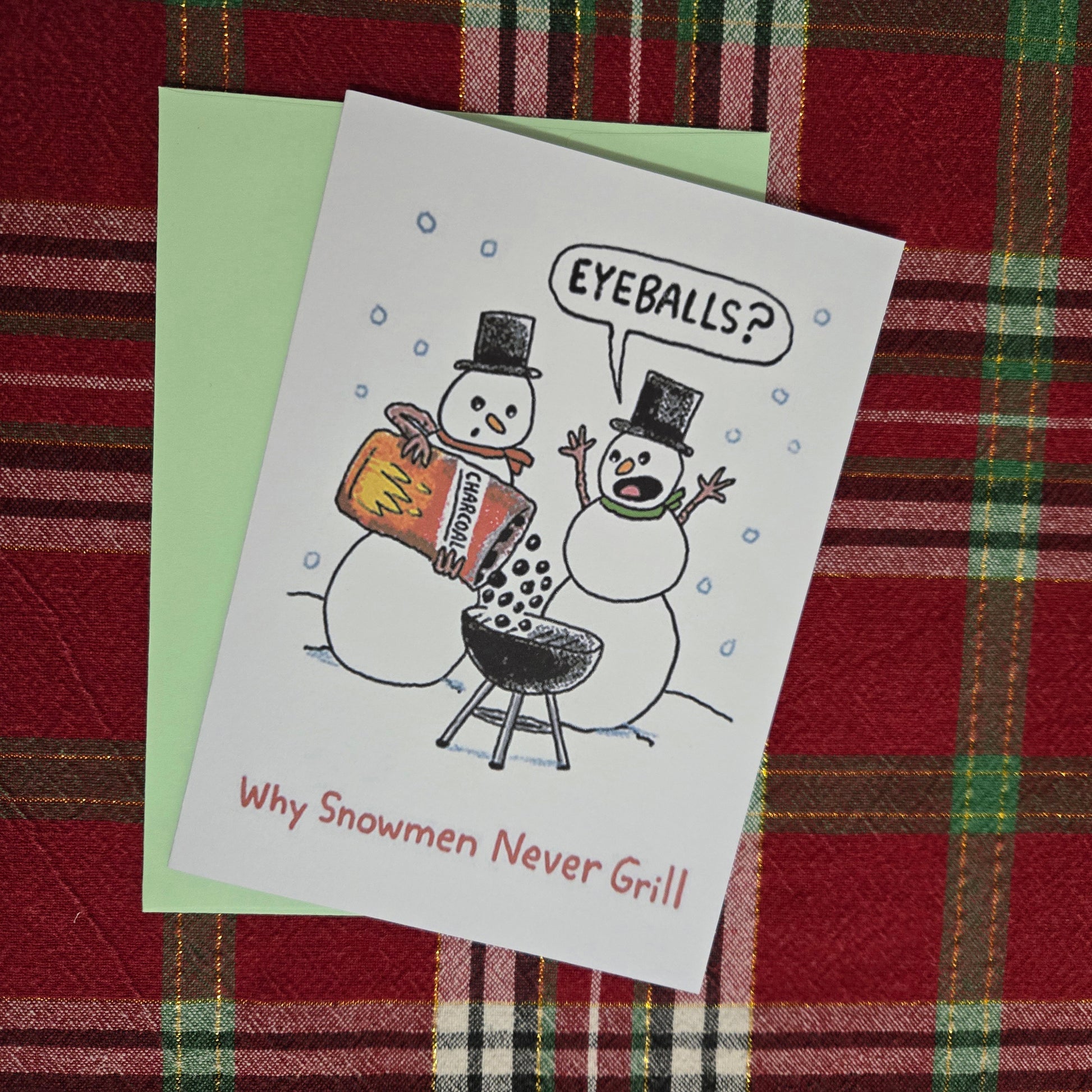 Give the gift of a giggle this holiday season with our 5x7 “Why Snowmen Never Grill” Christmas card.