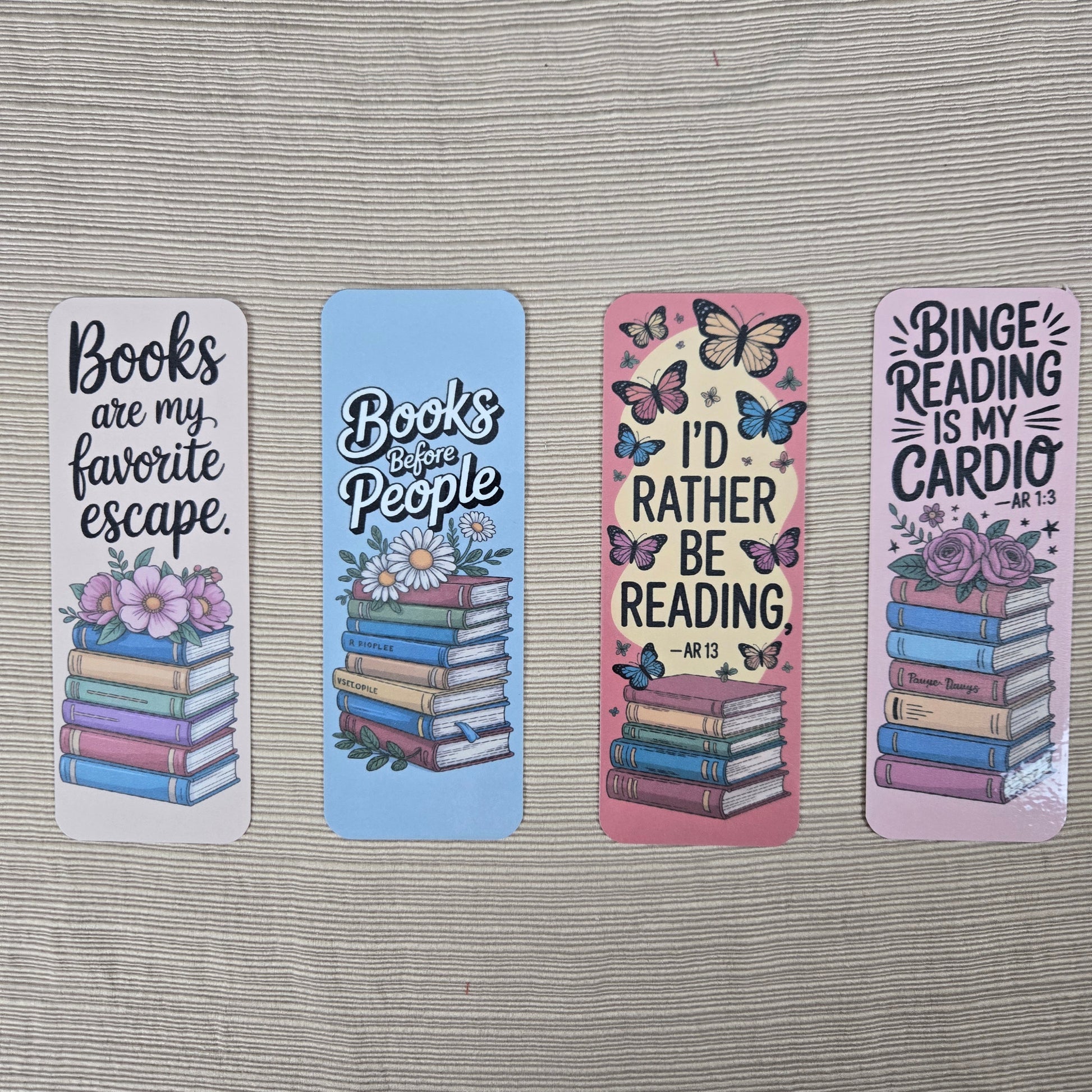 Measuring 2x6 inches and laminated for long-lasting use, this Funny Reading Bookmark brings a delightful vibe to your reading nook. Featuring adorable artwork on both sides, it adds a cheeky and loving flair to any page. Choose from four unique, quirky designs, each with its own amusing saying. A perfect little gift for every book lover who enjoys a smile with their story.