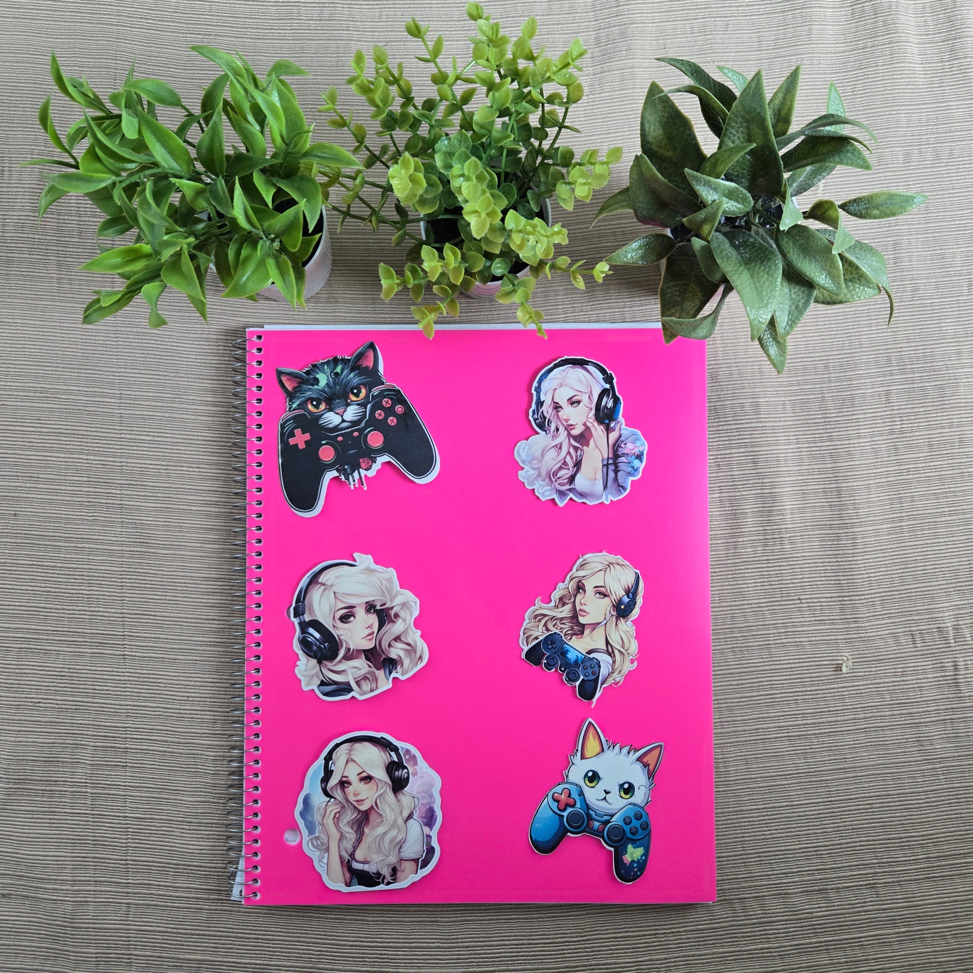 Unleash your bold side with this striking set of 6 Gamer Girl stickers! Each 3-inch sticker is laminated and water-resistant, made to stick fiercely on plastic, metal, glass, or any smooth surface. Command attention on your laptop, water bottle, or notebook with these edgy designs. Gather a few to trade with your crew or amplify your gear with a fearless pop of personality. The ultimate gift for gamers who aren’t afraid to stand out.