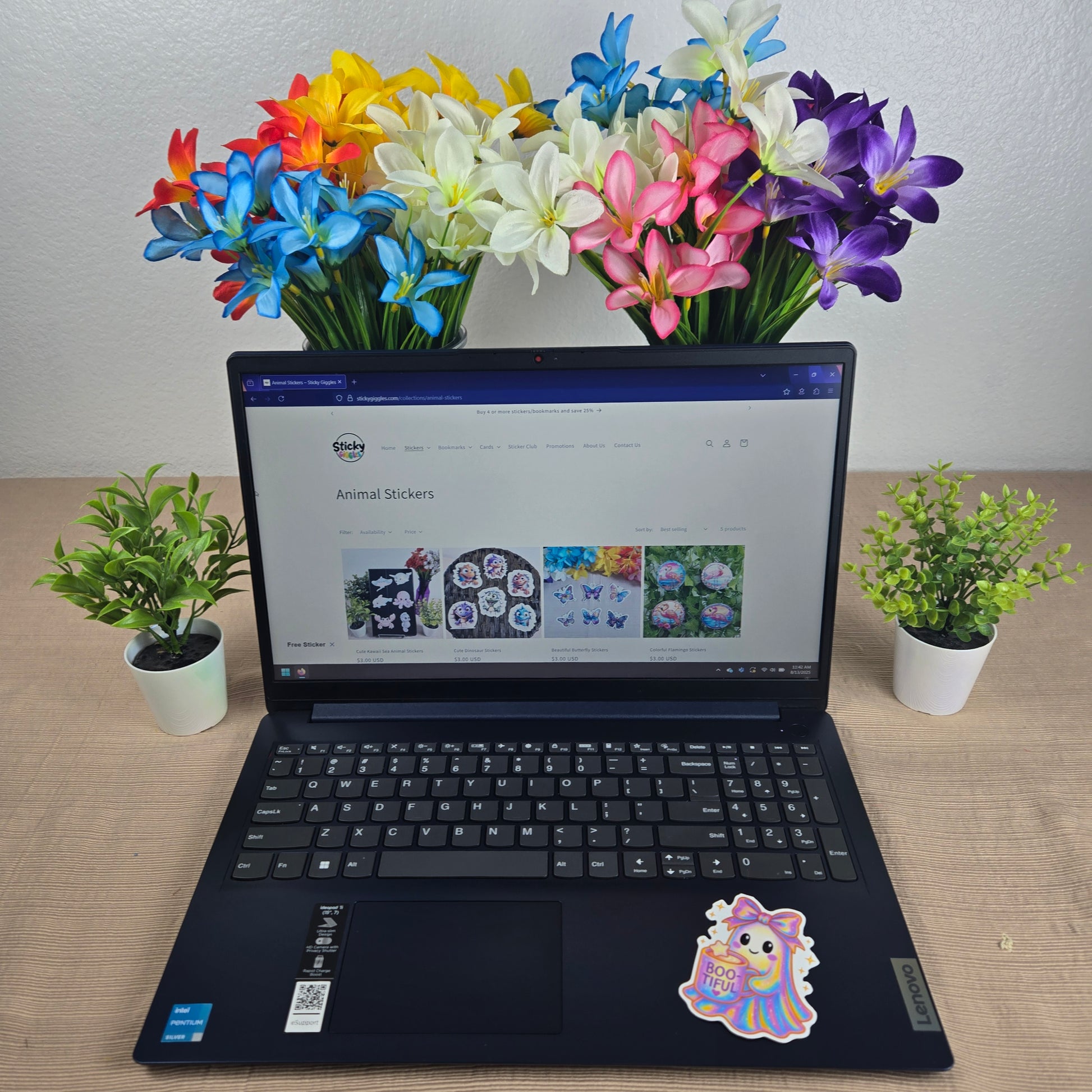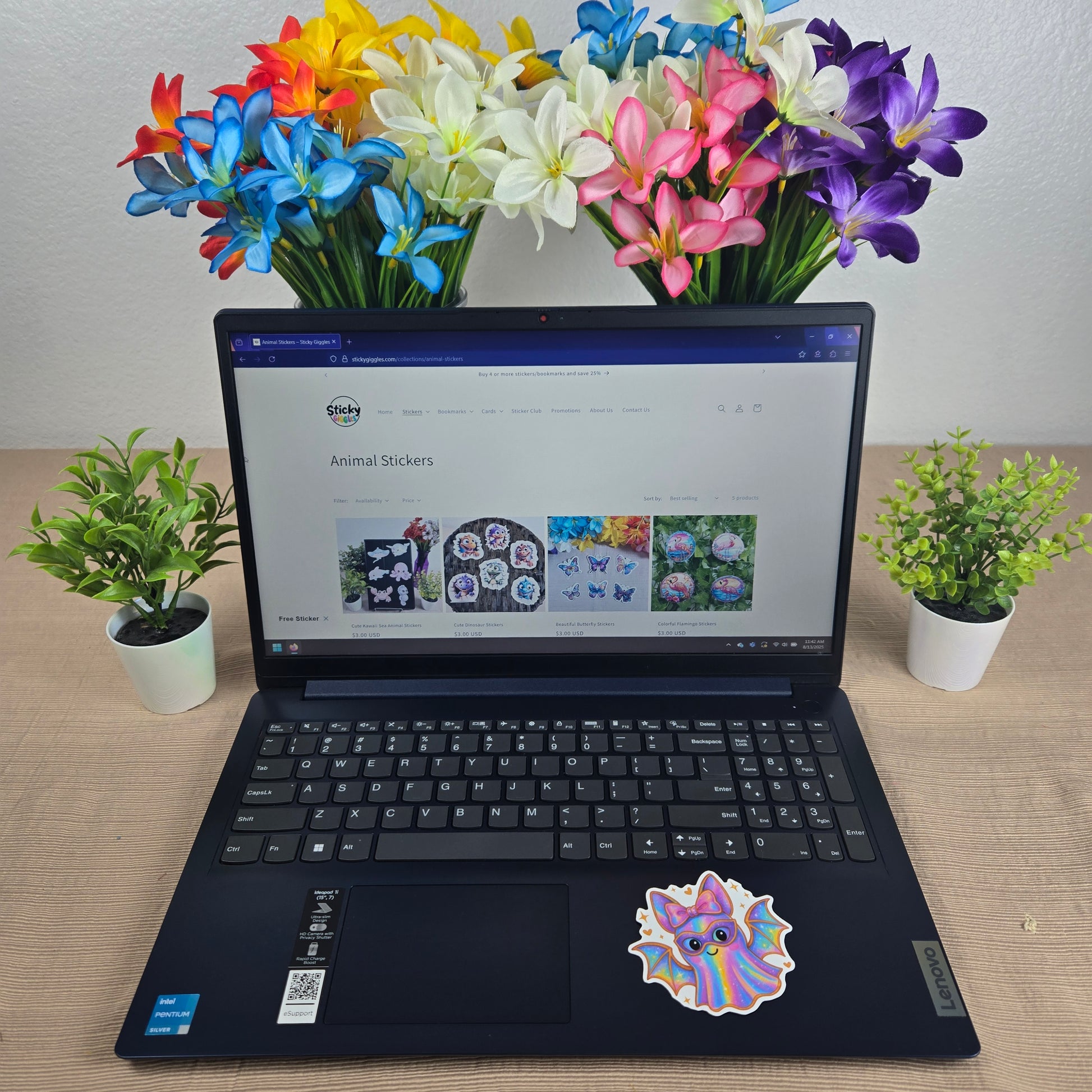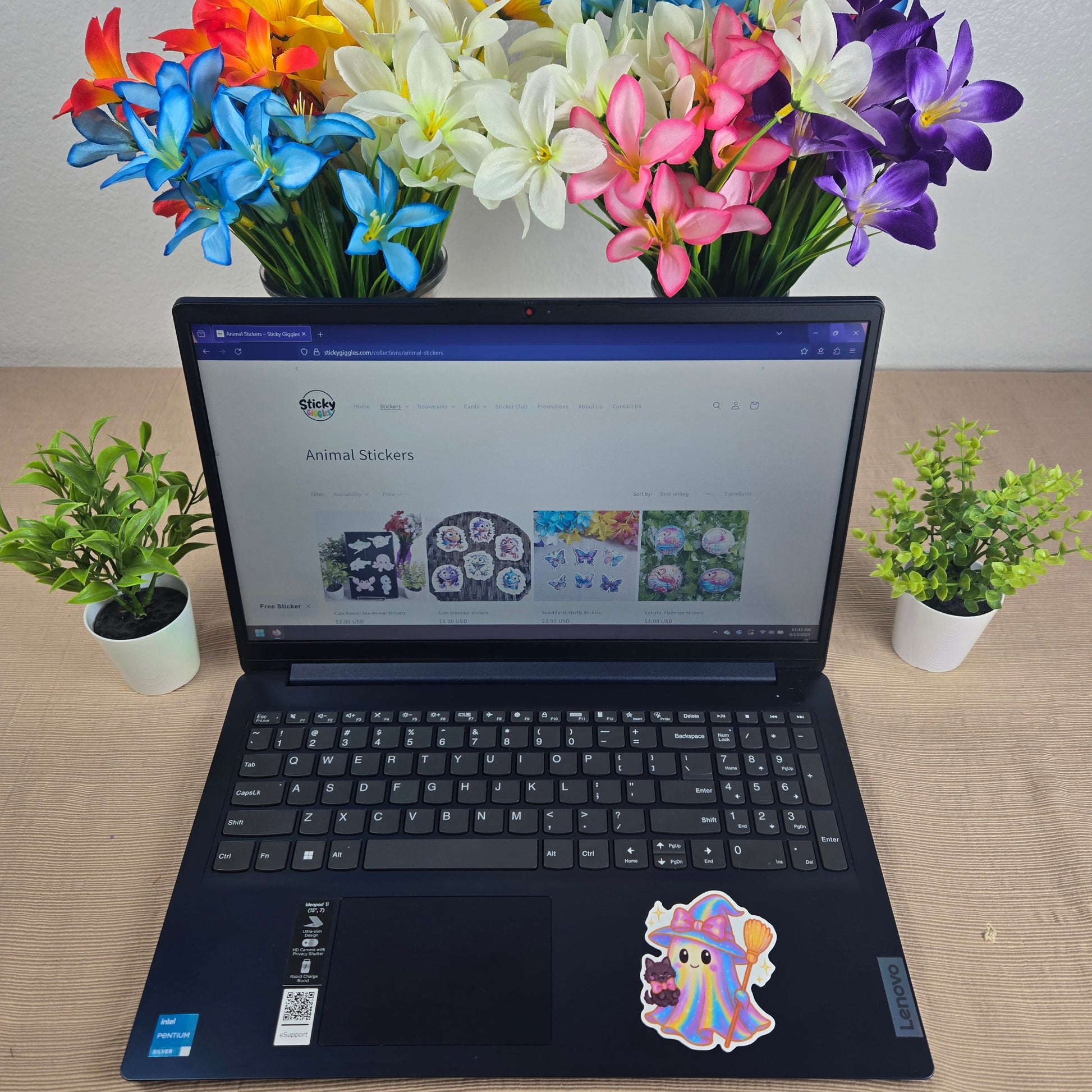 These cute Holographic Halloween stickers measure 3 inches across and are laminated for lasting durability and water resistance. Ideal for decorating smooth surfaces such as glass, metal, or plastic, they add a whimsical touch to your laptop, water bottle, or notebook. Perfect for keeping or gifting, these stickers bring a cheerful vibe and personality wherever you place them. Choose from 6 fun designs to mix and match your spooky but adorable style.