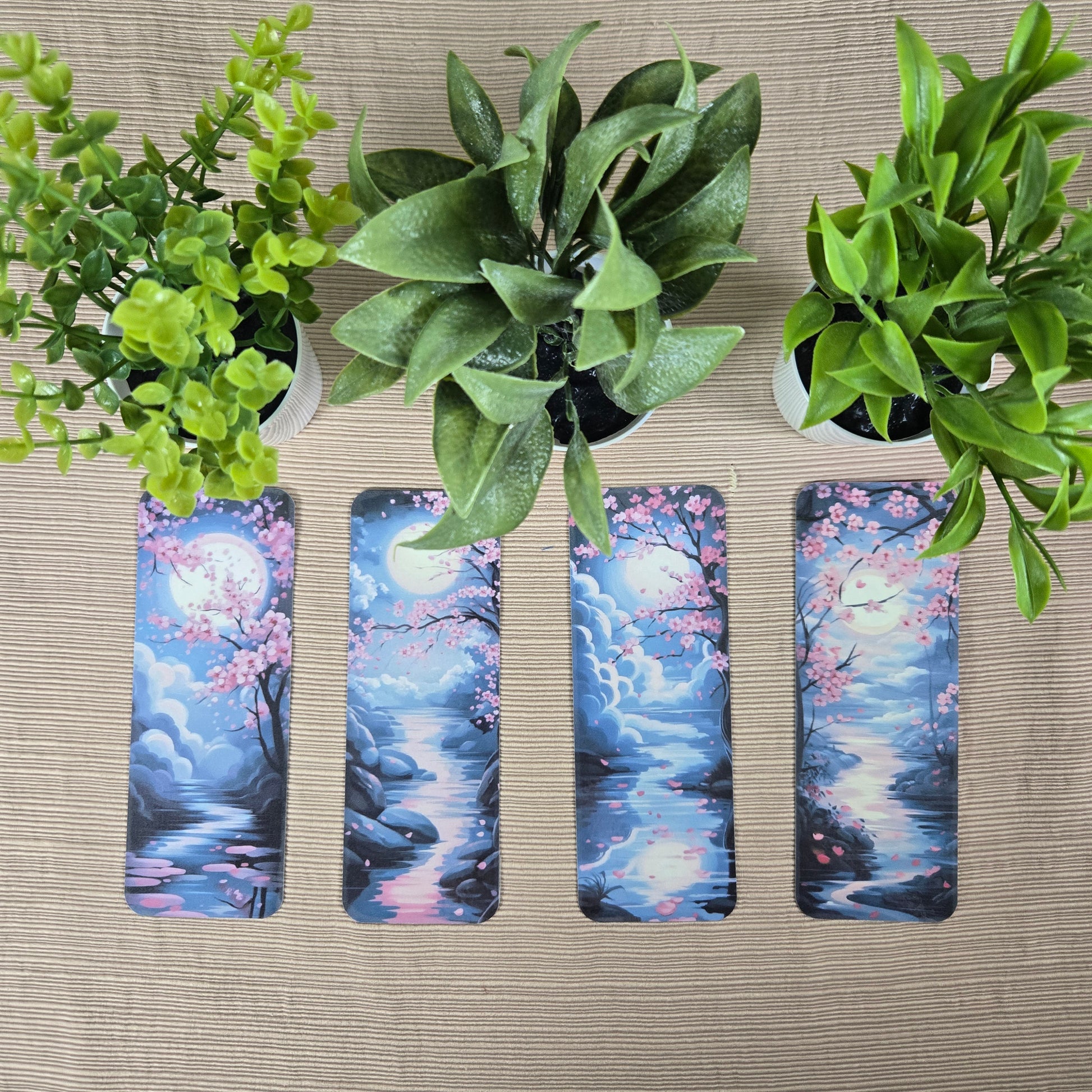 Measuring 2x6 inches and laminated for enhanced durability, the Moonlight Cherry Blossom Bookmark is both practical and elegant. The design is on both sides. Offered in four distinctive and artfully crafted designs, it provides a sophisticated means to mark your favorite pages with style. Whether you are indulging yourself or selecting a refined gift for a fellow reader, this bookmark adds a subtle yet uplifting charm to any book. Its delicate craftsmanship and lasting finish ensure it remains a treasured accessory for all reading occasions.