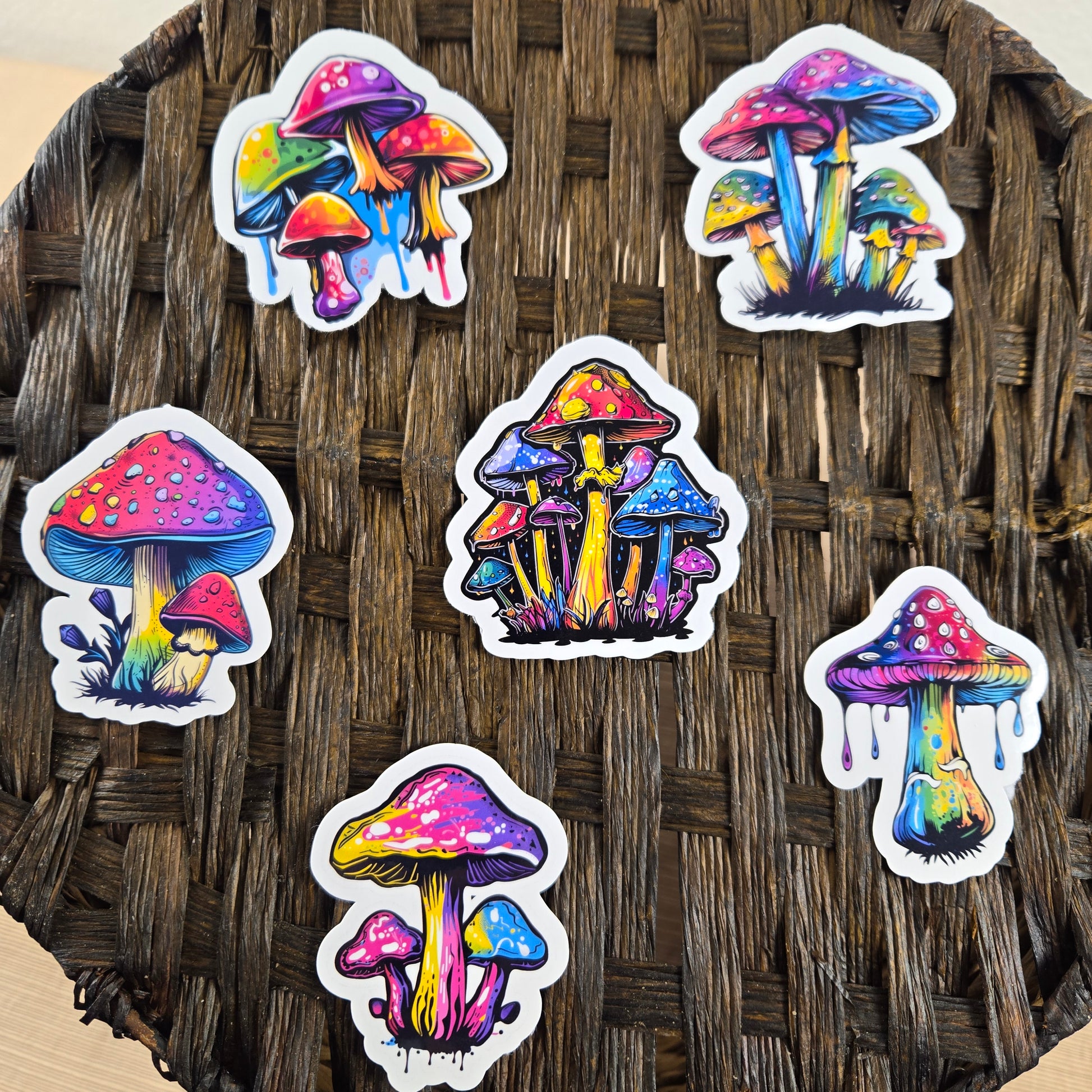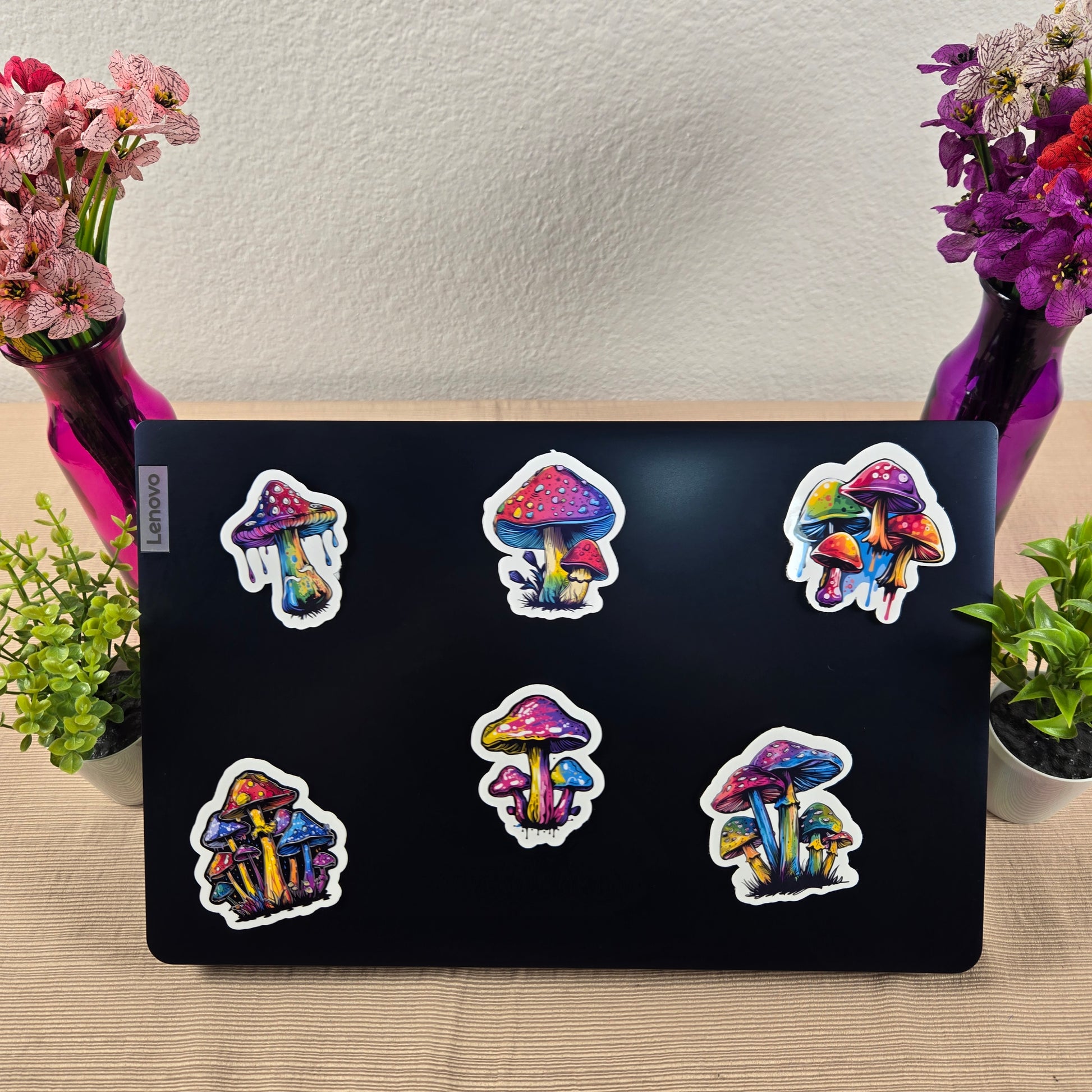 Celebrate your passion for mushrooms with our fun mushroom sticker set. Each 3" sticker is laminated and water resistant, perfect for decorating any clean, smooth surface like plastic, metal, or glass.