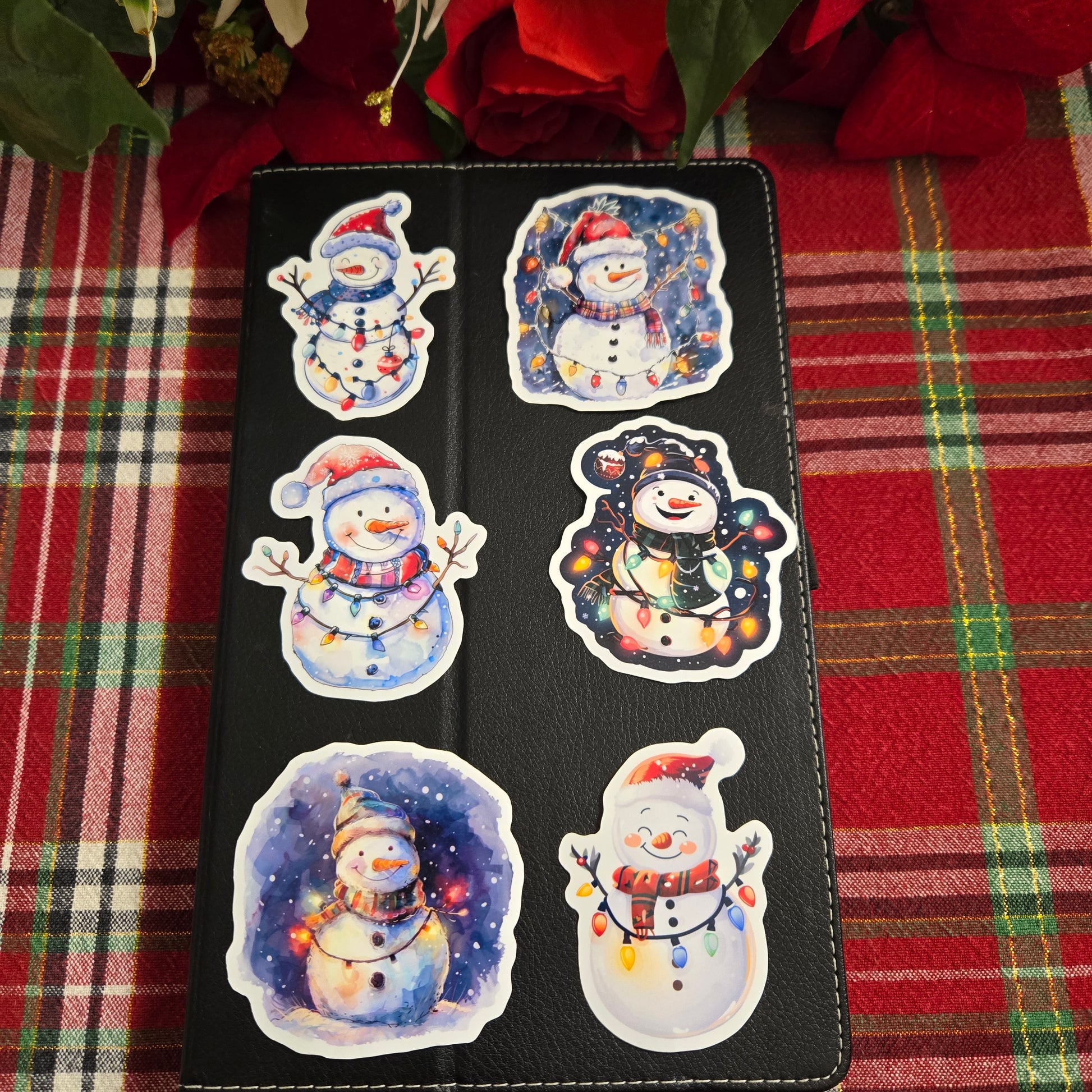 These festive Snowman Christmas Stickers feature six unique designs, each showcasing a jolly snowman full of holiday charm. Perfect for adding a touch of seasonal joy to your belongings.