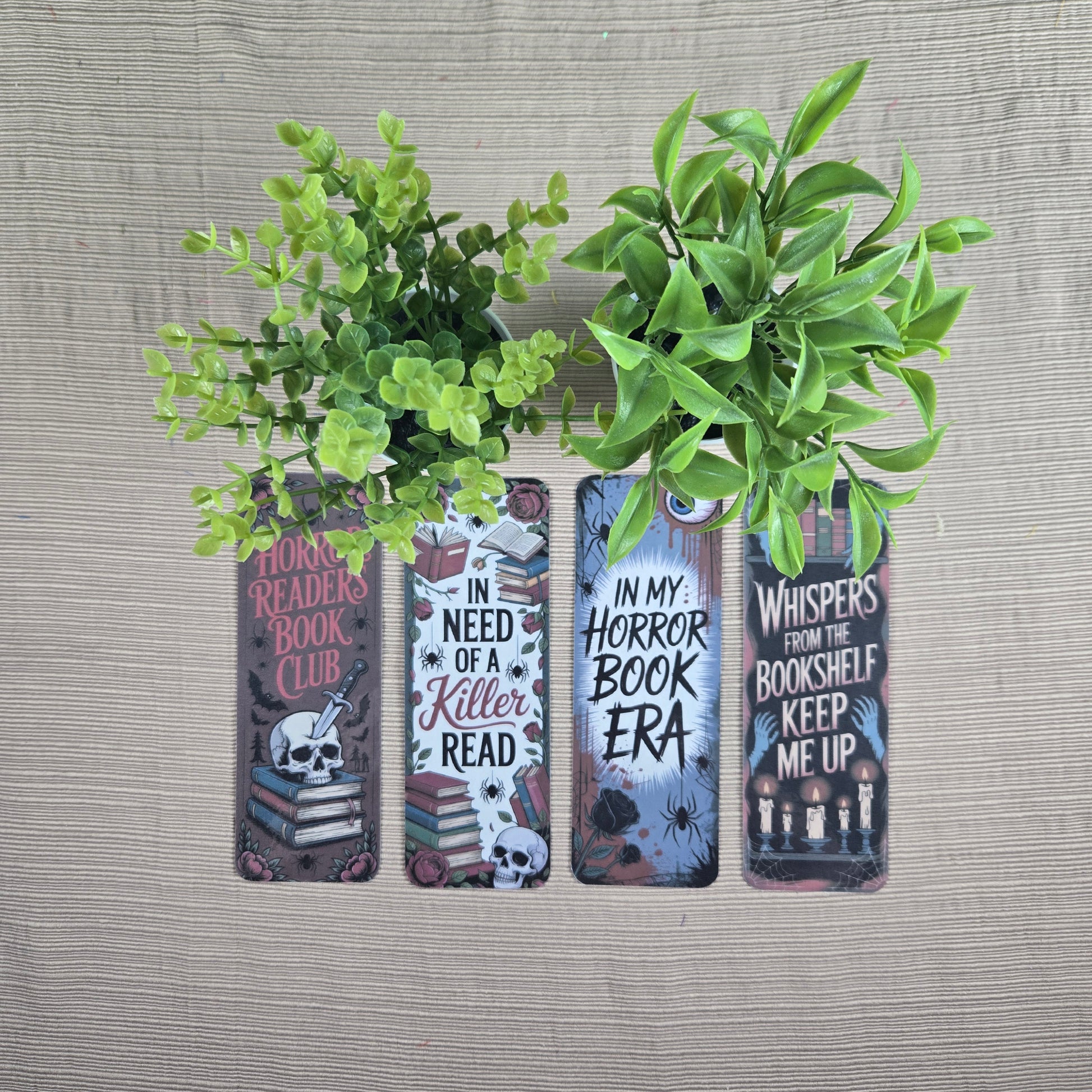 Celebrate your unique vibe with the Horror Booklover Bookmarks! These neatly laminated 2x6 inch bookmarks come in four distinct, stylish designs, each brimming with charm and flair. Ideal for marking your place in a favorite book or gifting to someone who loves a touch of spooky fun. Collect all four to enjoy special savings. Brighten up your reading moments with a playful splash of color—because every page deserves a little extra spookiness!