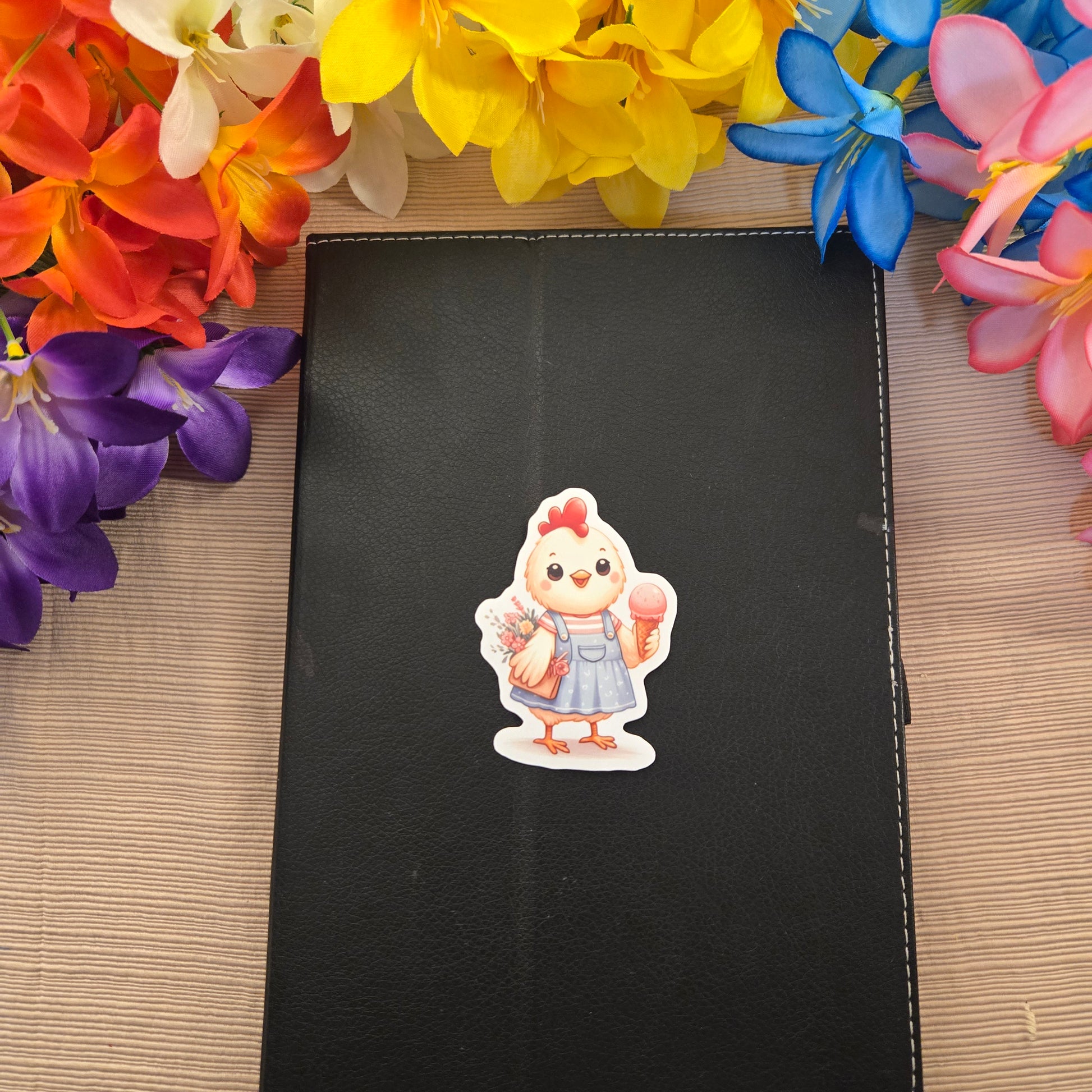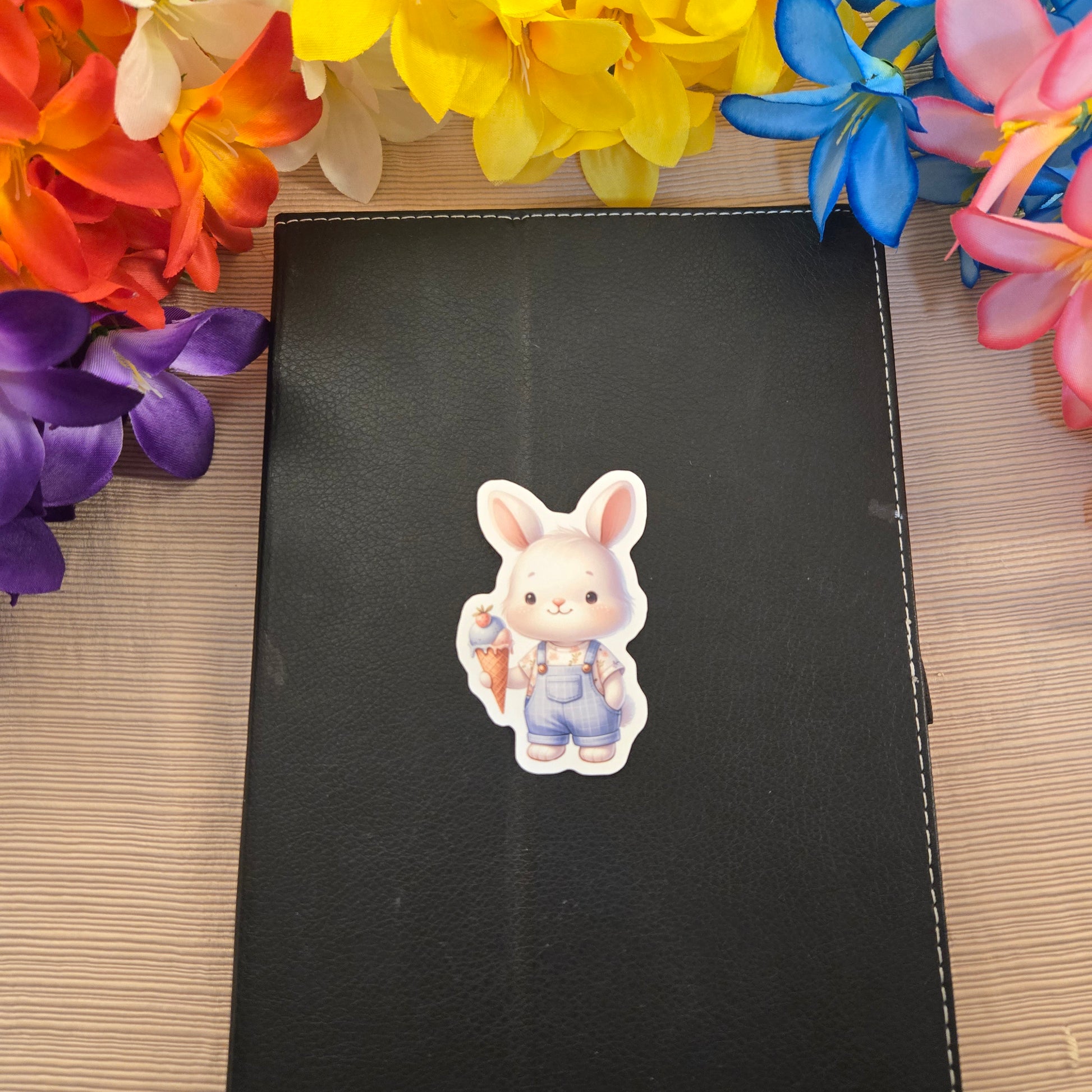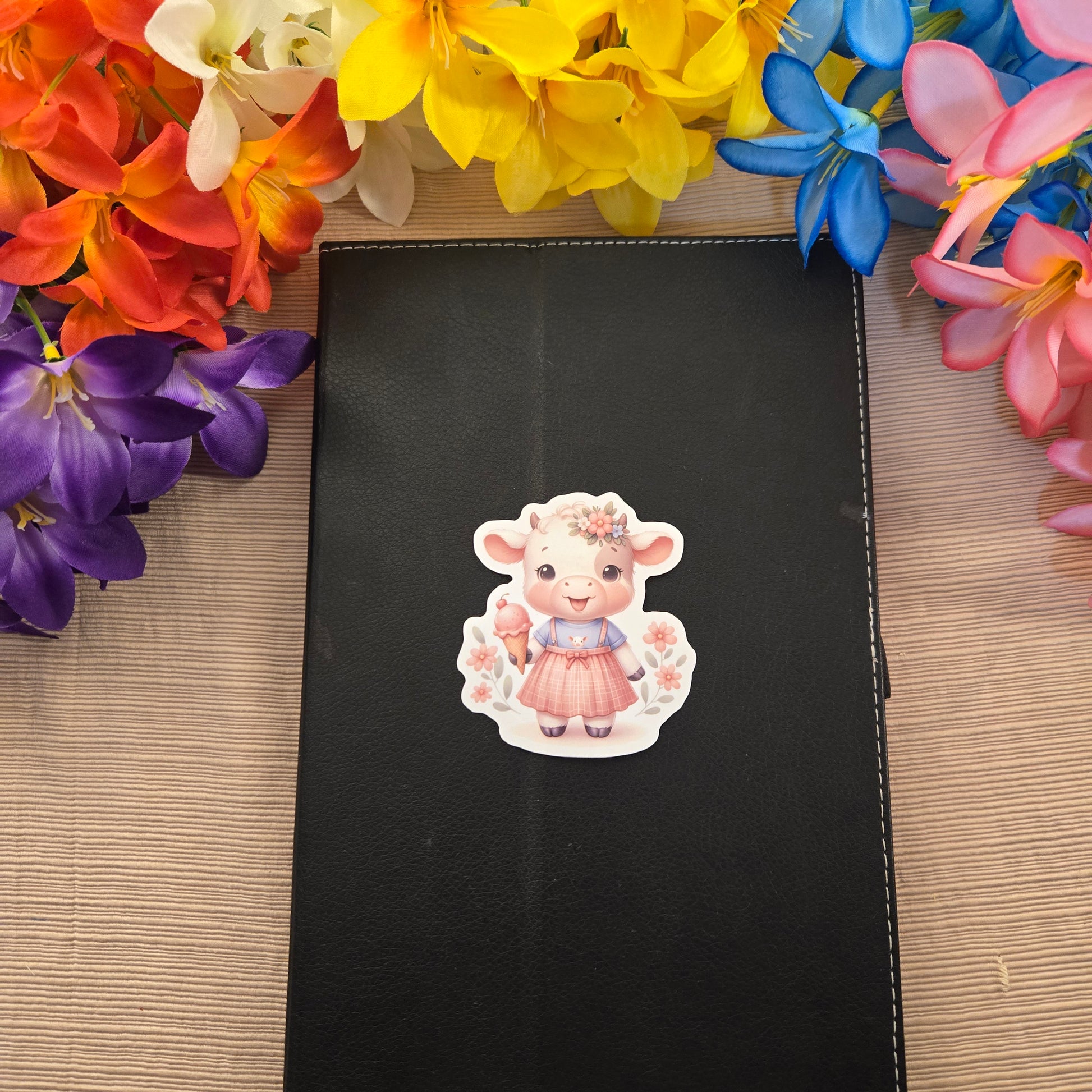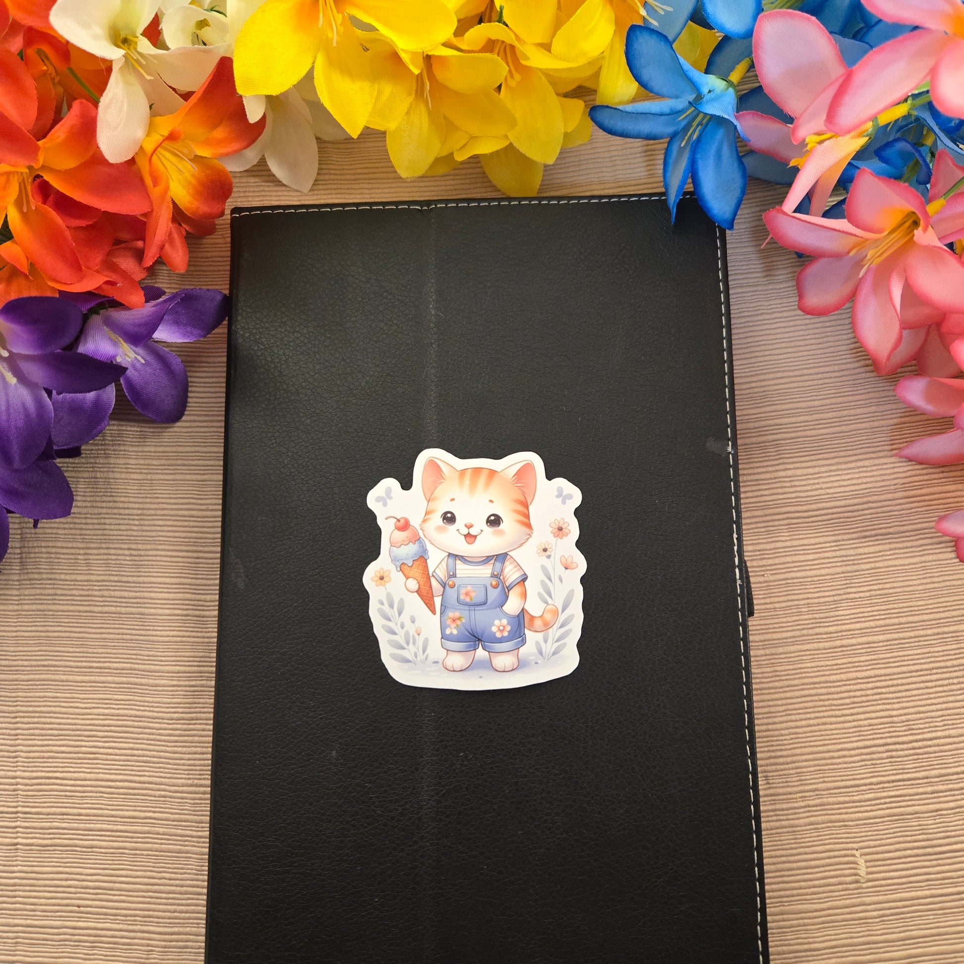 Enjoy this playful set of 5 stickers featuring adorable baby animals savoring ice cream. Each 3-inch sticker is laminated and water-resistant, made to stick securely on plastic, metal, glass, or any smooth surface. Perfect for adding a fun pop to your laptop, water bottle, or notebook. A delightful gift for animal lovers or anyone who loves a cute and cheerful surprise!