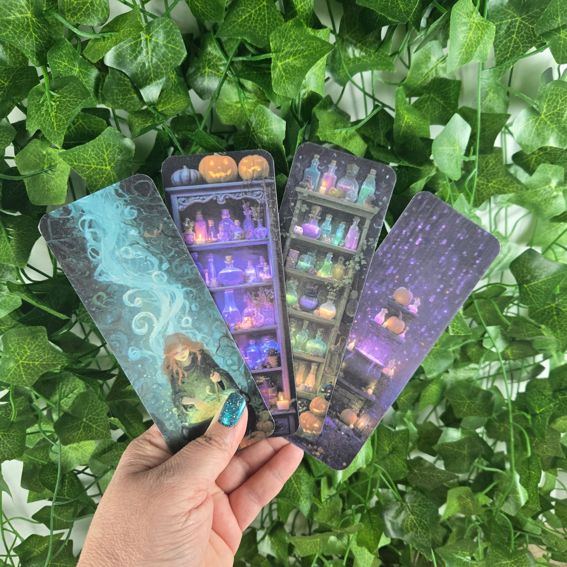 Elevate your reading experience with the Witches Potion Bookmarks, blending eerie charm with refined style. Each resilient, laminated 2x6 inch bookmark features one of four strikingly designed motifs that impart a captivating, haunting atmosphere to your books. Ideal for discerning readers or as an elegant gift, these bookmarks make a distinctive statement within any collection. Acquire all four to enjoy an exclusive offer and transform your bookshelf into a curated display of alluring, sophisticated keepsakes. A tasteful and bold way to mark your place with a touch of Halloween mystique.